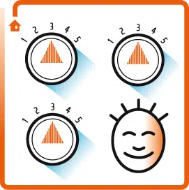 Alle termostater i rummet skal stå på det samme. Når du skruer op på '3', svarer det til 21 graders varme. Tænk over, at for hver ekstra varmegrad øger du dit energiforbrug med 5 procent.